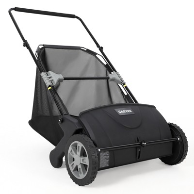 21-Inch Heavy Duty Push Lawn Sweeper, 3.5 Cu. ft. Mesh Grass & Leaf Collector with Dual Spinning Brushes, Tool-Free Height Adjustment, Black