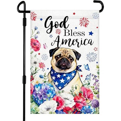 Lomsoe 4th of July Patriotic Garden Flag Flower Butterfly Yard Flag Welcome Yard Sign Independence Day Dog Flag Farmhouse Outdoor Decor 12x18 Inch