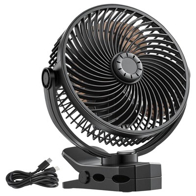 VEVOR Portable Clip Fan, Clip On Fan, USB Port with 3 Speeds & Circulation Mode, Strong Airflow Sturdy Clamp, Long Runtime for Desk,Black