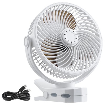 VEVOR Portable Clip Fan, Clip On Fan, USB Port with 3 Speeds & Circulation Mode, Strong Airflow Sturdy Clamp, Long Runtime for Desk,White