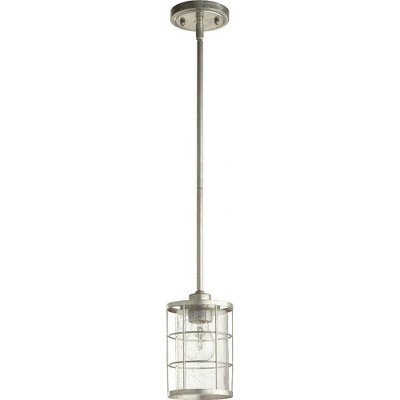 Quorum Lighting Ellis 1-Light Pendant, Tumbled Steel, Clear Seeded