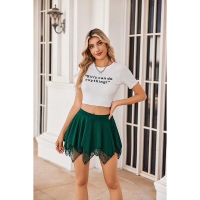 Avidlove Womens Mini Skirt Flowy Layered Lace Skirt Boho Asymmetrical Short Skirts for Women Dark Green L