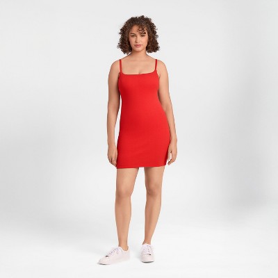 Slickblue Straight Neck Ribbed Cami Mini Dress, Elastic String Detail, Rayon-Spandex, Color Options, Size S-L