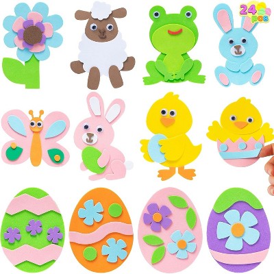 Joyfy 24 Pcs Foam Easter Egg Magnet Craft Kit, DIY Animal and Egg Magnet Set for Kids Classroom Homeschool Art Decor and Party Favors Craft Supplies