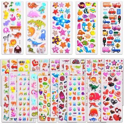 Etokfoks 3D Puffy Stickers for Kids 40 Sheet Variety Pack Over 1000 Reusable Stickers Animals Dinosaurs Cars Stars Hearts for Crafts Rewards