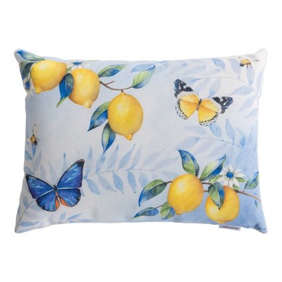 Blue Butterfly Garden Pillow - 18"x18" Climaweave Polyester Indoor Outdoor Decorative Accent by Manual Woodworkers and Weavers