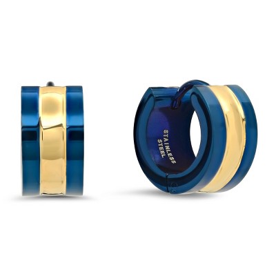Steeltime Men's two tone blue ip/18k gold plated stainless steel huggie earrings