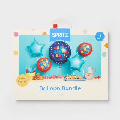 5ct Happy Birthday Foil Balloon Bouquet Red/Blue/Teal - Spritz™