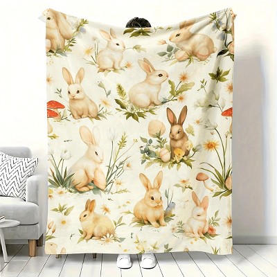 Nertpow 1PC Cozy Floral Bunny Throw Blanket With Light Yellow, Soft Warm Material for Sofa, Bed & Travel, All-Season Gift, Machine Washable.