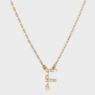 14k Gold Dipped Opal Pearl & Cubic Zirconia Letter Initial Necklace - A New Day™ Gold