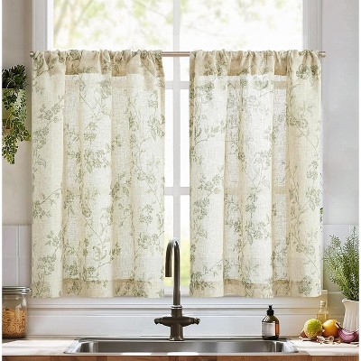 LISM Linen Floral Kitchen Curtains,Half Window Drapes Over Sink Light Filtering Curtains 2 Panels