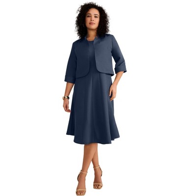 Roaman's Plus Size Elbow Sleeve Fit-And-Flare Dress With Bolero Jacket – 2-Piece Suit