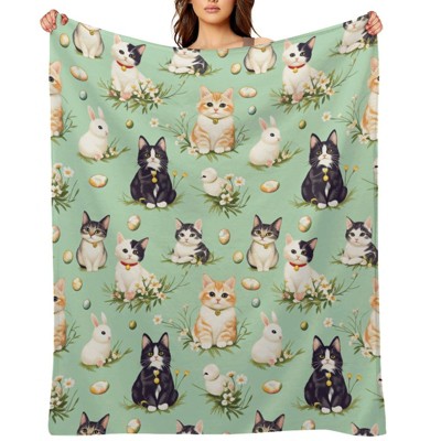 Cat and Bunny Fleece Blanket - 50x60in Cute Rabbit and Easter Egg Green Throw Blankets,Soft Cozy Lightweight, Ideal 50x60 inches