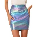 Artyska Women's Floral Satin High Elastic Waist Mini A-line Skirt