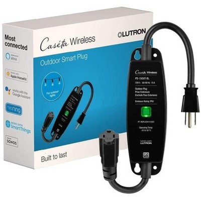 Lutron Caseta Weatherproof+Outdoor Smart Plug On/Off Switch (smart hub required) | for Landscape and String Lighting | PD-15OUT-BL | Black