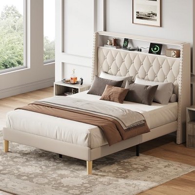 - beige upholstered bed