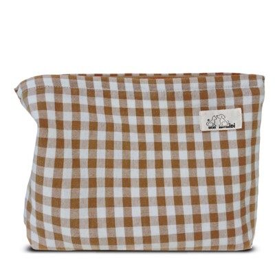 Narwey Khaki Gingham Cotton Makeup Bag Cosmetic Travel Pouch with Bottom, Make Up Purse Organizer, Zipper Closure, Canvas Lined…