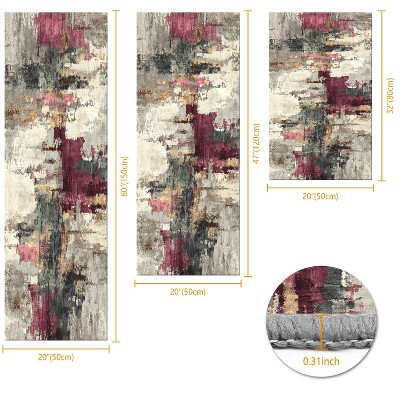 3Pcs Kitchen Rug Set Non-Slip Washable Abstract Soft Mat for Kitchen Bathroom Hallway Laundry Sink Floor
