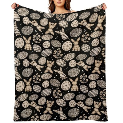 Easter Flannel Blanket Throw, Black Easter Eggs Plaid Bunny Rabbit Wave Point Soft Fuzzy Plush Cozy Blankets for Couch Sofa Bed 60x80 inches