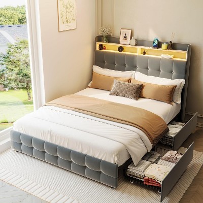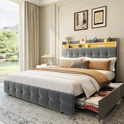 - grey upholstered bed