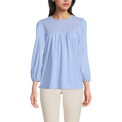 Lands' End Women's Plus Size Cap Sleeve Lightweight Jersey Pintuck Swing Top