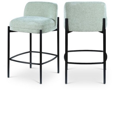 Meridian Furniture,Blake Green Boucle Fabric Counter Stool, Set of 2