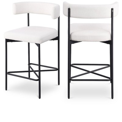 Meridian Furniture,Malin Cream Boucle Fabric Counter Stool, Set of 2