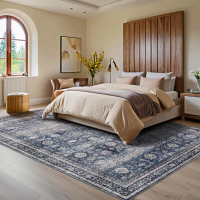 3'x5'Vintage Distressed Oriental Area Rug – Machine Washable, Non-Slip, Low Pile – Mark Resistant, Non-Shedding, Soft Modern Floor Mat, Blue