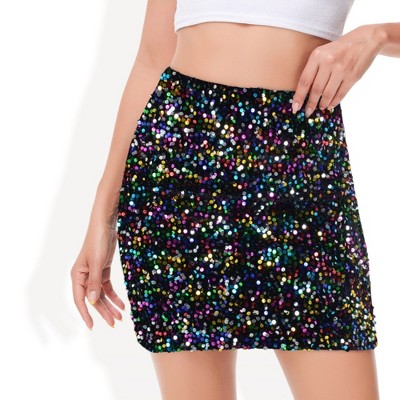 Anna-Kaci Women's High-Waist Sequin Mini Skirt Fitted Bodycon Glittering Design