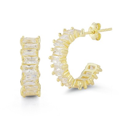 Sphera Milano Sterling Silver Baguette C Hoop Earrings