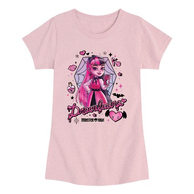 Girls' - Monster High - Draculaura Spider Web Icons Fitted Short Sleeve Graphic T-Shirt