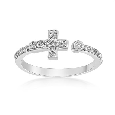 Lavari Jewelers Women's Natural Diamond Sideways Cross Sterling Silver Ring