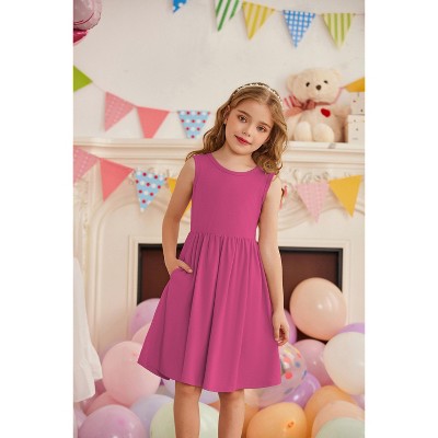 Arshiner Toddler Summer Dress Little Girls Sleeveless Bowknot Sundress Casual Beach Party Dresses with Pocket