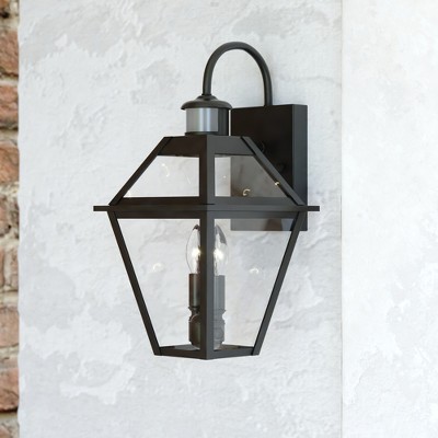 VAXCEL Nottingham Black Motion Sensor Dusk to Dawn Outdoor Wall Lantern Light Clear Glass, 17.25 inch