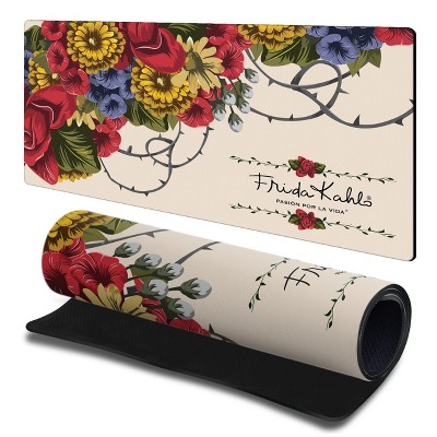 Frida Kahlo Floral Art Gaming Office Desk PC Keyboard Mouse Mat Pad 23.62 x 11.81 x 0.12 inches (600 x 300 mm) - L