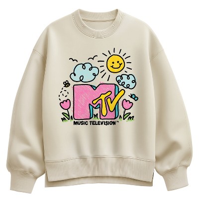 Women's MTV Sketchy MTV Oversized Fleece Crew Sweatshirt - Cream - Large