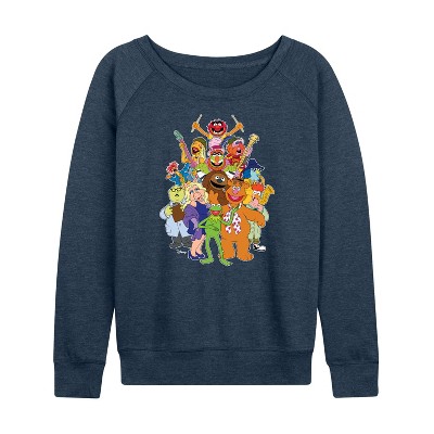 Women's - The Muppets - Collegiate Lightweight French Terry Wide Neck Long Sleeve Graphic Shirt