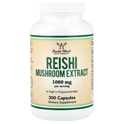 Double Wood Supplements Reishi Mushroom Extract, 300 Capsules (500 mg per Capsule)