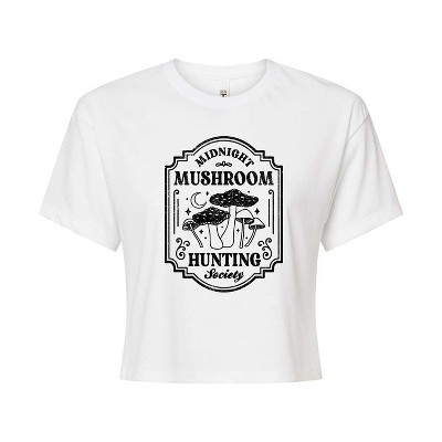 Women's - Instant Message - Midnight Mushroom Hunting Society Cropped Graphic T-Shirt