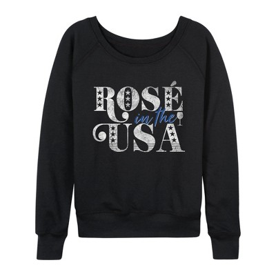 Women's - Instant Message - Rosé In USA Lightweight French Terry Wide Neck Long Sleeve Graphic Shirt