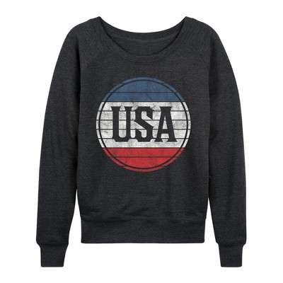 Women's - Instant Message - USA Letters Lightweight French Terry Wide Neck Long Sleeve Graphic Shirt