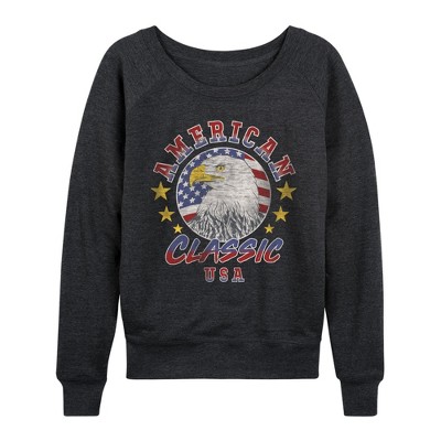 Women's - Instant Message - USA Eagle Lightweight French Terry Wide Neck Long Sleeve Graphic Shirt