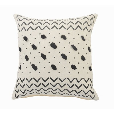 LR Home Ox Bay Hand-Woven Cream/Black All-Natural Cotton Pillow Cover