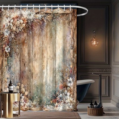 Lomsoe 1PC Bath Shower Curtain - Vintage Wood Plank Design with Floral Machine Washable Bathroom Decor.