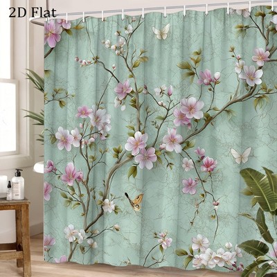 Lomsoe 1PC Shower Curtain Featuring a Floral Design with Branches And Butterflies, Perfect for Mid-Century Bathroom Decor.