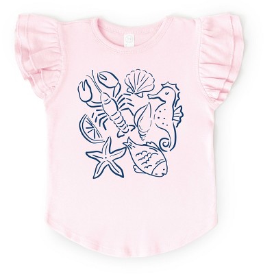 Nautical Animals Outlined - Flutter Sleeve Graphic T-Shirt