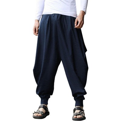 COOFANDY Men Pants Baggy Linen Cotton Boho Yoga Pants Summer Beach Pants Casual Drop Crotch Trouser