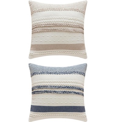 2-Pack Yarn-Dyed Patterns Navy Throw Pillows in Yarn-Dyed Bengal Stripe & Solid - Becky Cameron, Navy Yarn-Dyed Bengal Stripe / Solid, 20 x 20