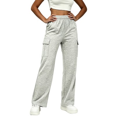 Women Straight Leg Cargo Sweatpants Elastic Waist Casual Loose Fit Lounge Pants with Pockets