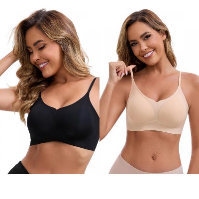 INSPIRE CHIC Women's V-Neck Wireless Lift-Up Adjustable Spaghetti Straps Soft Lightweight Seamless Bralette 2 Packs